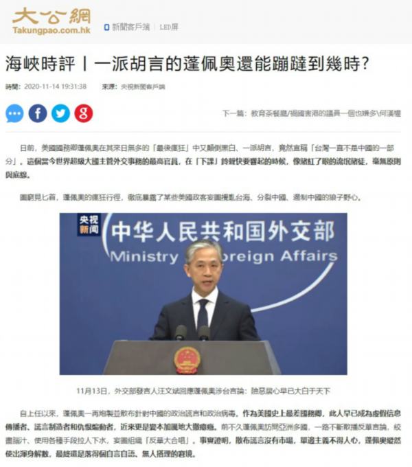 △香港大公网转载报道截图