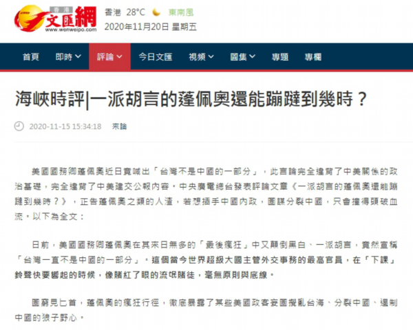 此外,香港《文汇报》、文汇网、大公网、澳亚网等港澳媒体对“总台海峡时评”系列文章进行了全文转载或摘要刊发。