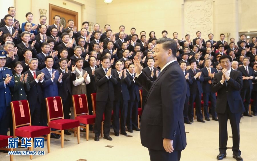 11月20日,党和国家领导人习近平、王沪宁等在北京会见全国精神文明建设表彰大会代表。新华社记者 鞠鹏 摄