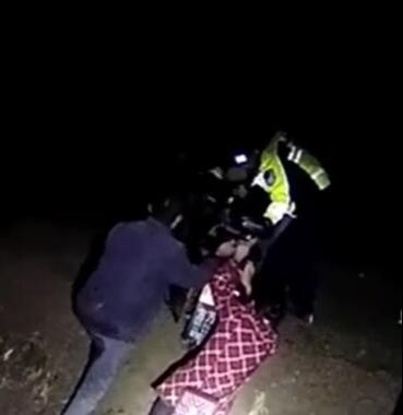 看到这一情况后,民警立即下车查看,在观察现场后,民警发现沟内到路面坡度较大,难以把车抬到路面,对面农田坡度较低,而且有一条小路可以绕到主路上,随即组织人员一边拿手电筒对现场进行照明,一边下到沟内帮助抬车。通过大家努力,终于成功将电动车从沟内抬上农田,从小路绕到主路上。