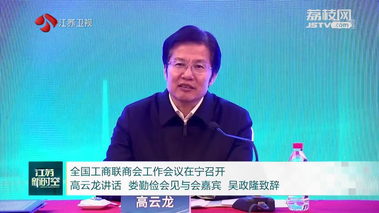 高云龙高度评价江苏统筹推进疫情防控和经济社会发展取得的成绩,充分肯定江苏民营经济发展和工商联工作。他指出,近年来,工商联认真贯彻落实习近平总书记重要指示批示和中央关于工商联所属商会改革决策部署,坚持问题导向目标导向结果导向,推动改革任务落实,商会改革合力正在形成、组织覆盖面不断拓展、政治引导功能逐步显现、服务会员方式不断创新、自身建设不断规范,取得积极成效。始终坚持党的领导、坚持把统战寓于服务之中、坚持壮大会员队伍、坚持改革创新,是推动商会改革发展探索出的基本经验。党的十九届五中全会为今后5年乃至更长时期我国经济社会发展擘画了宏伟蓝图,为深化商会改革工作指明了前进方向、提出了明确要求。习近平总书记在参观张謇生平展陈时发表重要讲话,充分体现了对民营企业家的高度重视和殷切希望。我们要认真学习习近平新时代中国特色社会主义思想,深入贯彻习近平总书记关于新时代民营经济统战工作重要指示和关于“两个健康”重要论述精神,站在“两个大局”高度,以促进“两个健康”为工作主题,以“四会”建设为总体要求,以培育“四好”商会为载体,统筹推进商会思想政治、组织体系、服务能力和制度机制建设,切实履行工商联指导、引导、服务商会职能,引导广大民营经济人士在全面建设社会主义现代化国家新征程中发挥积极作用。工商联所属商会改革发展进入新阶段,要进一步汇聚改革发展力量、加强商会政治建设、服务民营经济高质量发展、扩大商会组织覆盖面、提升商会规范治理水平,奋力开创新时代民营经济统战工作新局面。