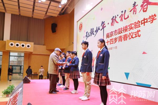 随后,同学们和家长一起带上青春的笑容,迈开坚定的步伐,穿越青春之门,跨过青春的门槛。南京市鼓楼实验中学孙汉洲校长,也为同学们送上学校的礼物——《中华经典修身诗文青少年读本》。