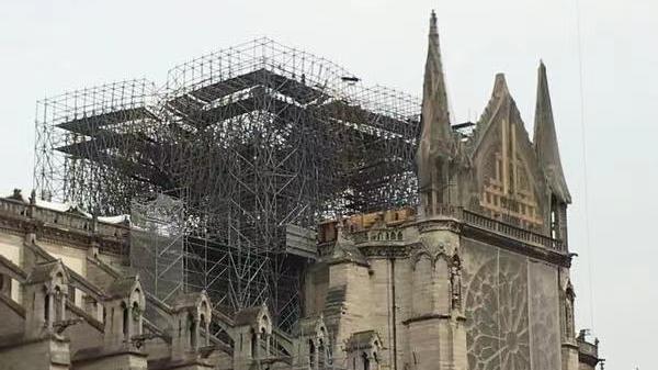 巴黎圣母院去年4月15日遭遇大火,当时圣母院正进行维修,已经在塔尖四周安装了重达200吨、由4万个零部件构成的脚手架。大火烧毁了圣母院的塔尖和大部分屋顶,脚手架也被烧焦,严重变形。经过评估,官方确定脚手架必须拆除。