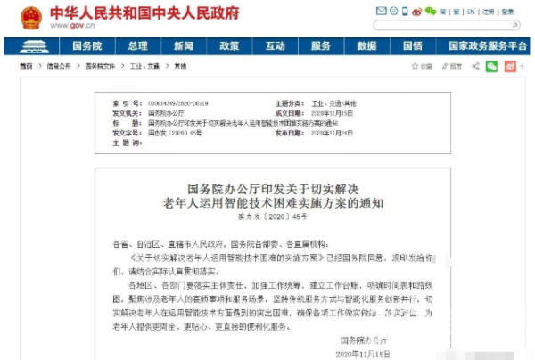 无健康码出行不便,网上挂号、网上就医、网上购物“障碍”重重……快速发展的信息技术,让更多人享受便利的同时,却在老年人面前划出一道无形的“鸿沟”。 国务院办公厅《关于切实解决老年人运用智能技术困难的实施方案》11月24日公布,针对老年人运用智能技术遇到的种种“痛点”和“难点”,提出解决方案。