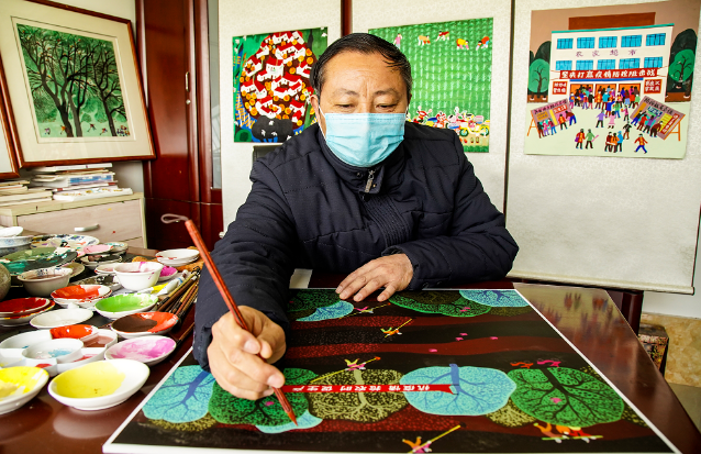 他利用农闲时间,对村民进行农民画系列知识的普及传授,悉心指导促进农民画学员绘画水平提高。先后帮助数十名村民画师以画增收,过上幸福小康生活。