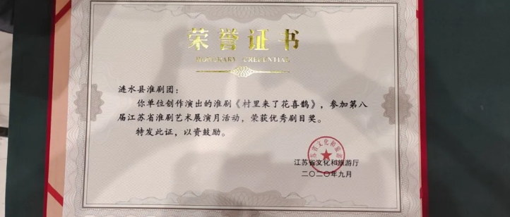 2016年创作演出的《留守村长留守鹅》在第七届江苏省淮剧艺术展演中获优秀剧目奖,经专家遴选参加全国基层院团开幕式首演,荣获第三届江苏省文华奖、江苏省第十一届精神文明建设“五个一工程”奖。