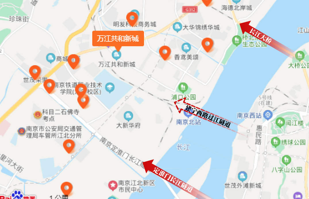 万江共和新城红公馆•君藏位于长江大桥与扬子江隧道之间,距离两条现有过江通道均约10分钟车程。但其实这并非是楼盘最佳的出行通道。对小区业主而言,最大的利好是项目位于建宁西路隧道口,距离建宁西路隧道口不到十分钟车程,有了这条过江隧道,未来与鼓楼滨江板块的连接将更为紧密,通过扬子江大道等快速路直达龙江、河西等区域。