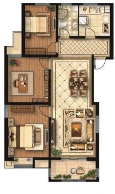 户型亮点:三室两厅两卫,厅卧朝南,双阳台