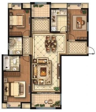 1)建筑面积约124㎡的户型