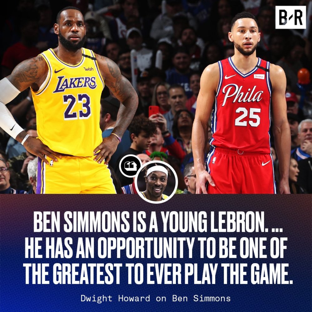 霍华德今日受访时强调,西蒙斯就是一个年轻版的詹皇,我喜欢他打球无私的方式,这是一个非常真实的对比,西蒙斯有机会成为史上最伟大的球员之一,我很高兴有机会给他一些帮助,让他持续成长。