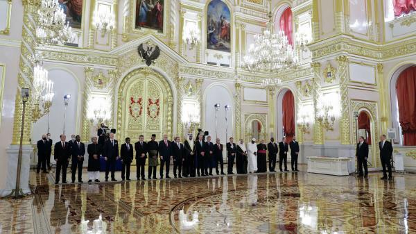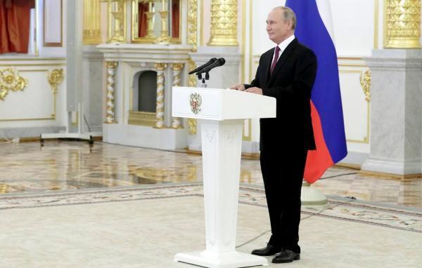 当地时间11月24日,俄罗斯总统普京在克里姆林宫举行仪式,接受比利时、芬兰、沙特阿拉伯等20国大使递交的国书。