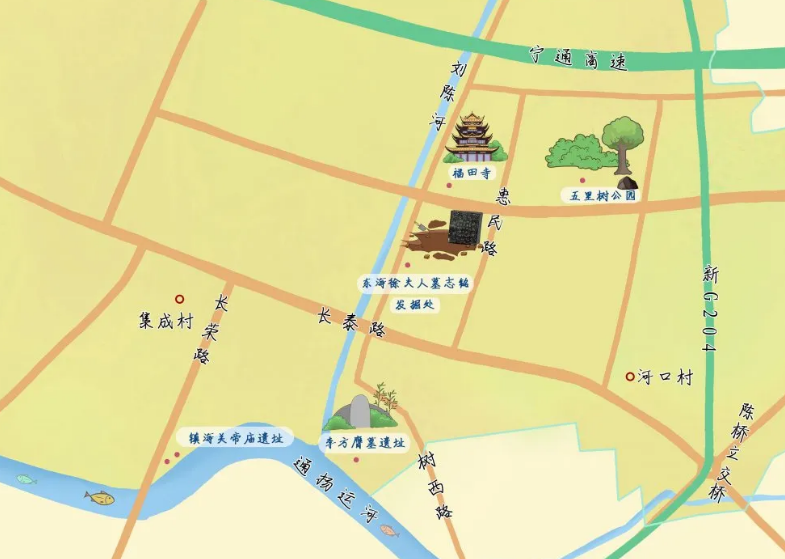 而对于地下文物的保护利用有多种方式,建设遗址博物馆或遗址公园也是可行性较强的选项。专家建议,可在十八里河口徐夫人墓志出土遗址筹建“通扬运河文化博物馆”。十八里河口运盐河文化带,可以与如东掘港国清寺海丝文化带连接起来,共建南通大运河文化景观长廊。