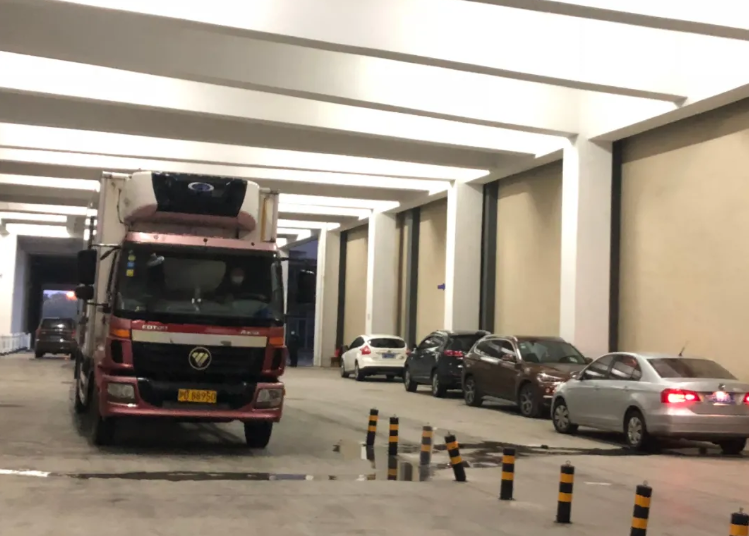 今天傍晚5点不到,一辆沪D牌照的冷链车停在位于通农物流中心的崇川区进口冷链食品集中监管仓门口。在车辆、送货人员、货单等相关信息核对无误后,冷链车经由专用通道,径直开到卸货区。