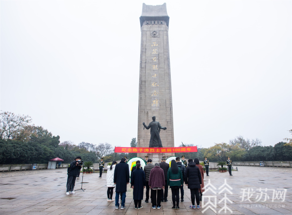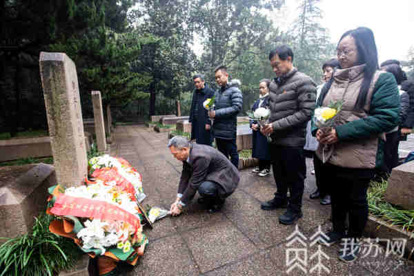 细雨绵绵,雨花台烈士陵园里一片肃穆。陈子涛烈士家属,以及陈子涛烈士诞辰100周年纪念活动筹委会代表一行15人,向雨花台烈士纪念碑敬献花圈,并在党旗下重温入党誓词。在知名烈士墓前,陈子涛烈士家属一一上前,整理花圈挽联。1961年出生的陈江是陈子涛烈士的侄子。他从小就听长辈们讲起许多“三叔”的故事,从心底敬佩这位从未谋面的长辈。1987年,陈江自己曾到南京寻找过“三叔”的墓地。