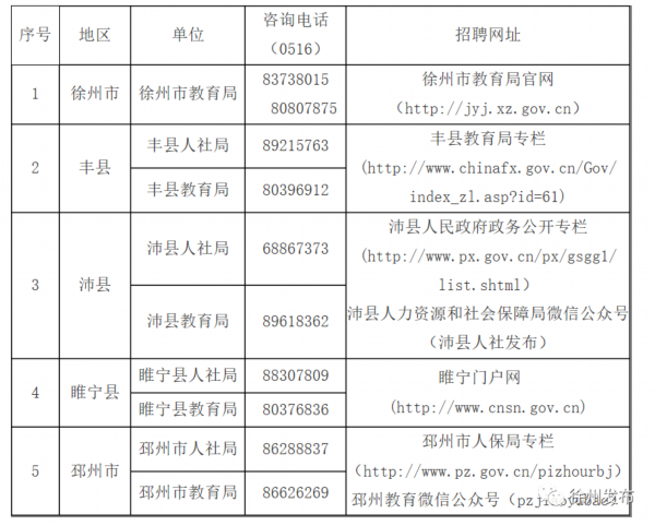具体招聘计划请登录徐州市教育局官方网站下载。网址: