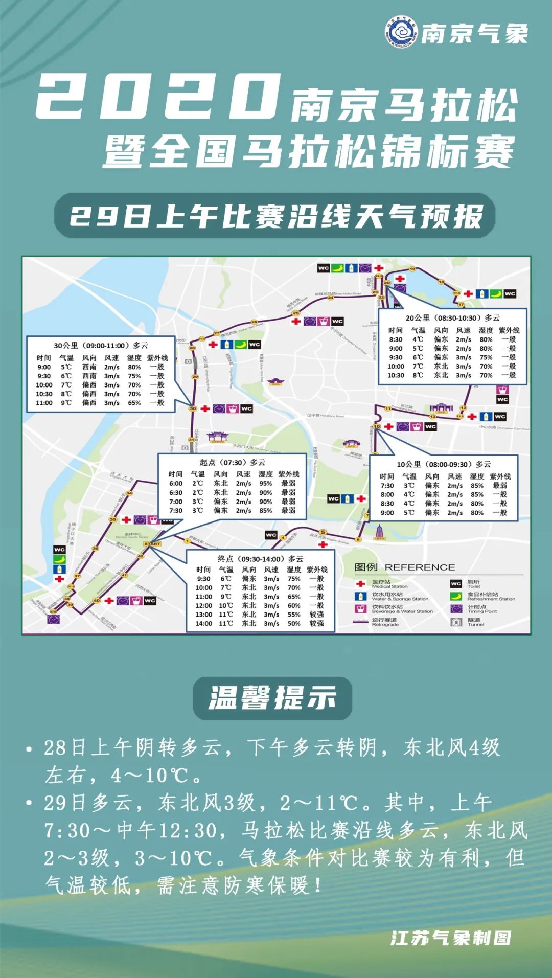 11月29日(本周日)7:30,2020南京马拉松暨全国马拉松锦标赛(奥运会马拉松达标赛)鸣枪开跑。注意啦!“跑马”的小伙伴最关心的当天上午的天气在此↓
