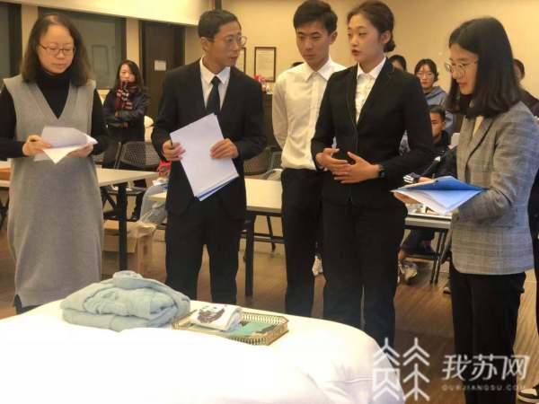 “酒店入住接待大赛”、“酒店营销接待大赛”、“户外拓展设计大赛”、“导游讲解大赛”.......在为期一周的职业技能大赛上,南京旅游职业学院各个二级学院都拿出了看家本领。如酒店管理学院的“主题夜床设计大赛”,分为中式铺床和主题夜床设计两个部分,学生们身着整齐的酒店工装,动作利索,短短几分钟内把单调的床布置得整齐、温馨、美观。