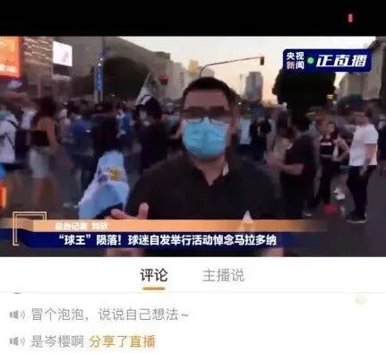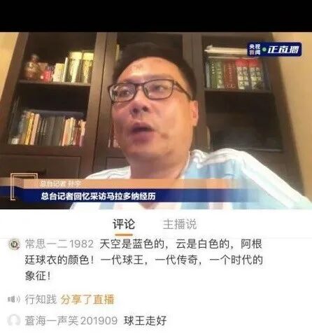 张斌说,老马在足球场内、足球场边,都是当然的主角,他70%、80%的影像,大家是从CCTV这个平台里看到的。足球是岁月的共同体。像他一样生于60年代末,成长在80年代,工作开始在90年代,他们整个的成长历程跟马拉多纳的球星之路,和马拉多纳在世界产生的影响应该是同频共振。金庸老爷子、科比走了的时候,朋友圈刷屏,尽管很多人未必喜欢看武侠小说、看篮球,但大家都知道金庸、科比,他们是大家人生记忆的一部分。马拉多纳走了,朋友圈也在刷屏,尽管很多人未必真喜欢看足球,但大家都知道马拉多纳,他也是大家人生记忆的一部分。 国际台驻阿根廷记者孙宇采访马拉多纳
