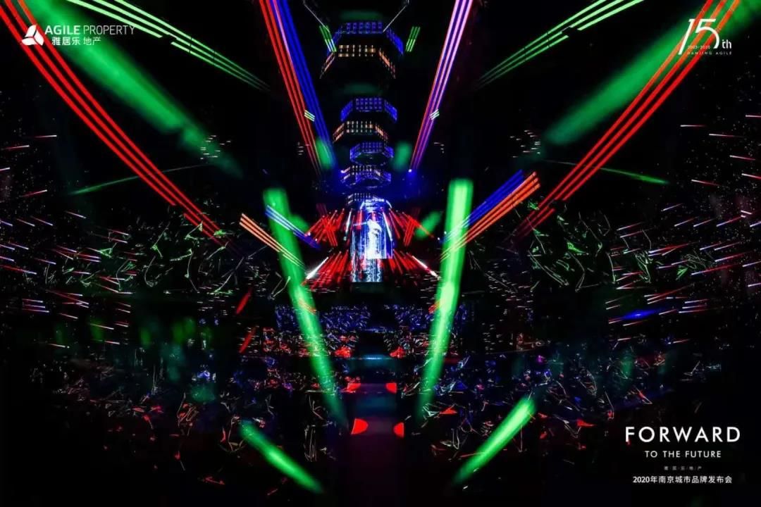 本次雅居乐品牌发布会颠覆性地把地点选择在了南京最HIGH的夜店——Future, 霓虹炫彩,现场燃动,如走进入了一个绚丽的时光廊道,透明的曲面屏上光影流线不断渐变,置身现场仿佛便能与时空对话。