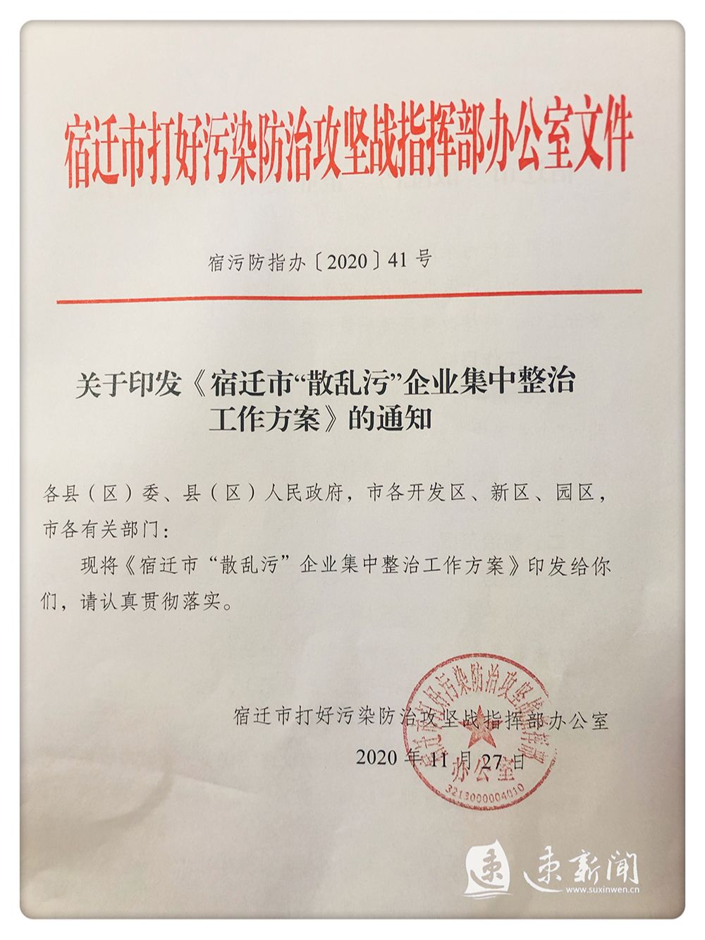 11月28日,记者从2020年市打好污染防治攻坚战指挥部第十一次会议暨“散乱污”整治定向挖潜推进会上获悉,宿迁市打好污染防治攻坚战指挥部办公室出台《宿迁市“散乱污”企业集中整治工作方案》,确定即日起全面推进“散乱污”企业整治,以实现“清零”目标,全力改善环境质量。
