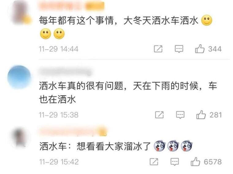 随着冬天的来临,很多地区温度都降至0℃以下。但是有些地区的洒水车仍然每天在马路上洒水,天气一冷,地面上有水就容易结冰,导致市民出行不便、交通事故频发。