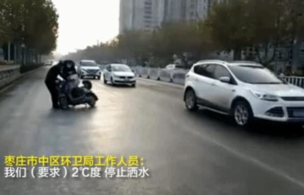 山东枣庄市中区环卫局工作人员回应:目前已经要求洒水部门停止洒水,以后2℃以下就要停止洒水。