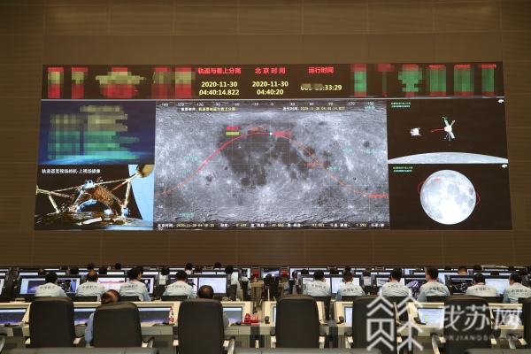 凌晨4时40分,在科技人员精确控制下,嫦娥五号探测器组合体顺利分离。