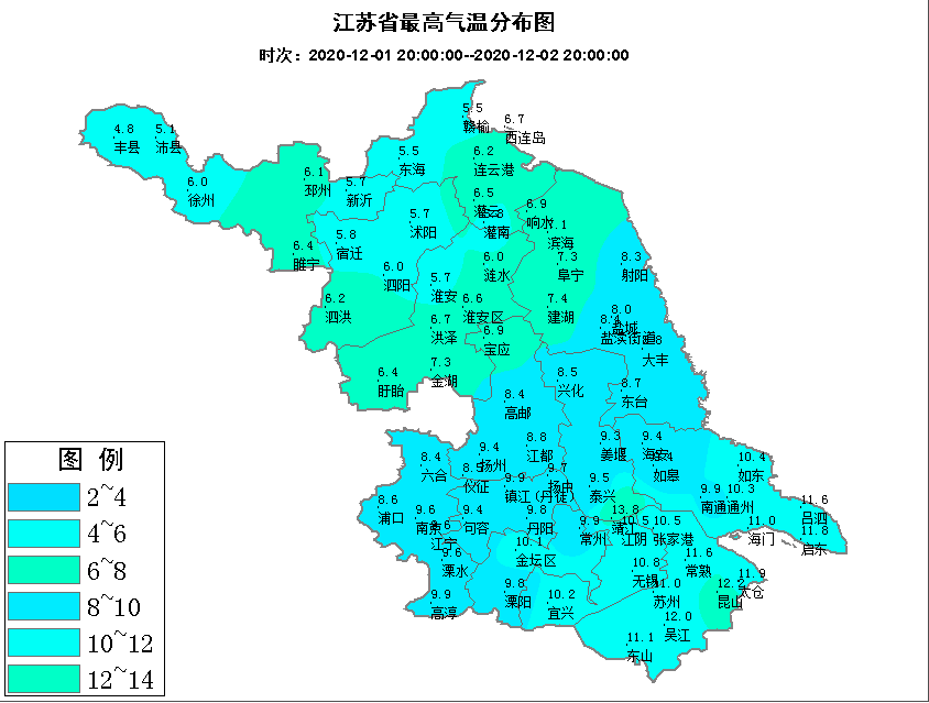 12月2日,江苏不少地区都飘了些小雨,天气阴沉,气温也校低,多个城市的气温只有个位数,淮北地区7℃左右,苏南地区11~12℃,其它地区9℃。下午两点,全省大部分地区降水趋于结束。