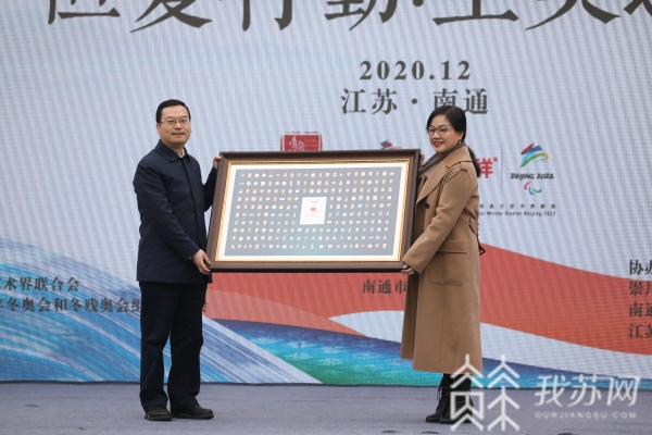 体育和文化相辅相成,艺术的形式更能推广奥林匹克精神。作为“为奥运喝彩”艺术总顾问,南通籍著名画家范扬是活动举办地——通师二附的校友。多年来,范扬创作了大量体育及奥运题材作品,为传播奥林匹克精神作出了突出贡献,因此,他获得了顾拜旦金奖。本次“回家”,范扬向学校赠送特殊礼物“心石”雕像,以表达心系母校、心系家乡之情。范扬表示,“为奥运喝彩”走进母校令人非常高兴,他希望用更多的渠道和方式让学生可以更加了解奥运、热爱奥运。“为奥运喝彩”海外艺术总顾问、“绘梦行动”发起人黄建南则向学校赠送了写有“凌云壮志”的书法作品,并与现场学生一起进行艺术互动。他表示,绘画艺术可以丰富精神世界,希望通过活动引导孩子们健全身心健康、加强彼此沟通理解。