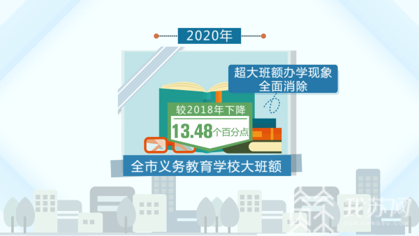 为了有效化解因学龄人口不断增长造成的学位紧张问题,经过两年多的努力,目前宿迁市已建成60所中小学校,其中中心城区36所、县域24所,提供学位89430个。仅2020年宿迁市中心城区新建成19所高颜值、高品质学校,扩大招生14129名,有效满足了人民群众对优质教育资源的需求。2020年,全市义务教育学校大班额较2018年下降13.48个百分点,超大班额办学现象全面消除。