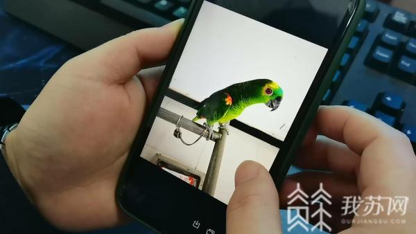 瞧,这就是唐某在朋友圈晒的鹦鹉图片,头顶有鲜艳的羽毛,非常漂亮。民警对图片进行鉴定,这是一只蓝额亚马孙鹦鹉,是受国家保护的濒危野生动物。扬州市江都区塘头派出所民警周洲介绍:“这只鹦鹉是本地人唐某所饲养,研判他的交际网, 唐某把这只鹦鹉饲养在一个亲戚家。 ”
