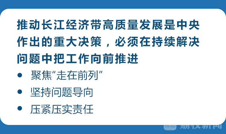 会议强调,推动长江经济带高质量发展是中央作出的重大决策,要清醒认识到我们取得的成绩只是阶段性的,工作中还有不少短板弱项,必须在持续解决问题中把工作向前推进。要聚焦“走在前列”,坚持系统观念,抓住主要矛盾,统筹生态环境保护修复、创新转型绿色发展、畅通国内国际双循环、高水平对外开放、传承弘扬长江文化等重点工作,推动江苏长江经济带高质量发展。要坚持问题导向,抓好突出生态环境问题整改,抓好国家《警示片》披露问题整改,举一反三抓好自我排查工作,更加注重从根源上分析症结、从源头上解决问题。要压紧压实责任,各级党委政府要切实负起责任,省长江办要充分发挥统筹协调、督办检查、调研评估等职能,相关部门要发挥好行业管理作用,确保长江经济带发展各项工作落到实处。
