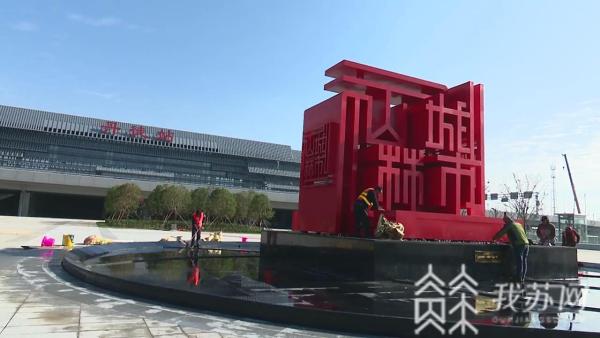 今天(12月4日),记者来到整个交通枢纽广场最中间的位置,身后是一个象征性的雕塑,借用的是北宋书法家米芾在镇江的墨迹”城市山林”,它采用的是中国传统的篆刻形式进行的原创雕塑,整个雕塑的通体采用的是大红色,也象征着吉祥,目前整个雕塑已经完工,工人们正在进行最后的清理打扫,等到完全建成之后,这里也将成为丹徒片区的新地标。