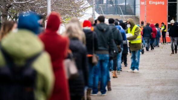 奥地利民众等待新冠病毒检测 图片来自央视新闻