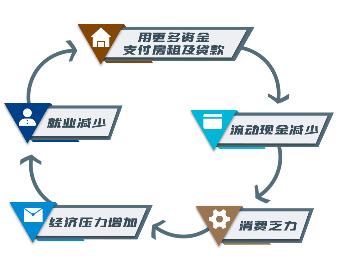 据分析,低收入者将把更多的资金用于付租金、还房贷,将使流动资金减少、消费乏力,从而影响经济活力,最终陷入“恶性循环”。