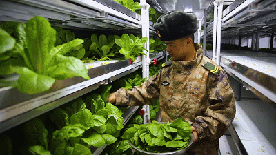 战士走进连队“植物工厂”采摘蔬菜