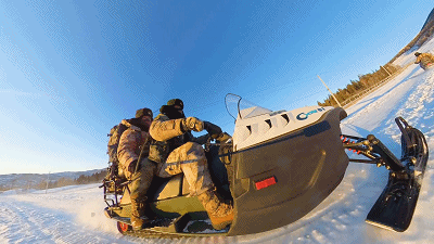 驾驶着配有暖风装置的摩托雪橇