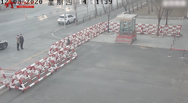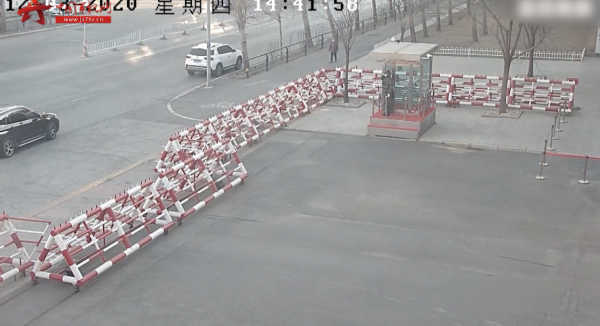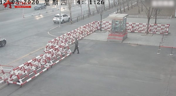 随后车主登车离去并通过车窗向哨兵竖起大拇指,哨兵面对汽车行驶的方向高高地举起右手敬礼,向曾经为单位建设的老兵致敬。