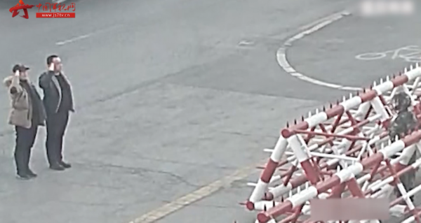 只见两名男子下车之后昂首挺胸地向营区敬礼。