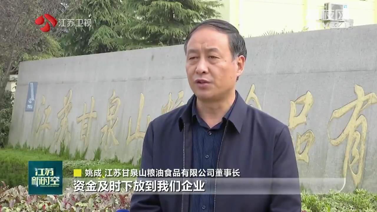 江苏甘泉山粮油食品有限公司董事长姚成说:“资金及时下放到我们企业,保证了我们对农民收粮过程当中资金能及时兑付给农民或者粮食经纪人。 ”