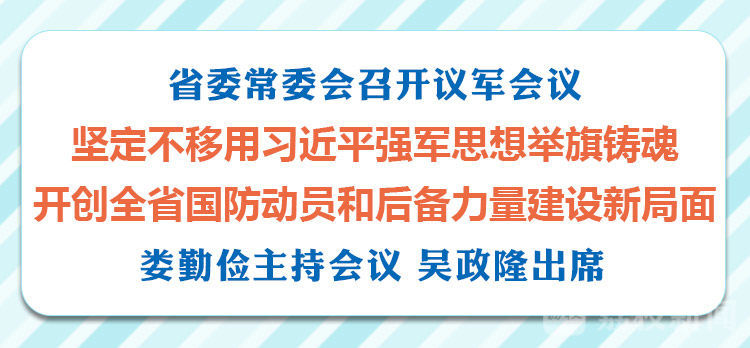 荔枝新闻讯 12月4日,省委常委会召开议军会议,深入学习贯彻习近平总书记关于国防和军队建设重要指示精神,听取全省军事斗争国防动员准备情况及下一步重点工作任务汇报,讨论有关文件,研究部署下一阶段工作。省委书记、省军区党委第一书记娄勤俭主持会议并讲话。省委副书记、省长、省国防动员委员会主任吴政隆就国防动员工作作了讲话。