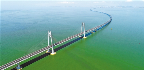 “十三五”时期,“天眼”望天、“蛟龙”探海、大飞机首飞……一批批创新成果竞相涌现,创新驱动发展成果与广阔的应用场景交汇融合。在新发展理念引领驱动下,“十三五”期间我国发展跑出“加速度”,奔向“新未来”。图为港珠澳大桥。新华社记者 梁 旭摄