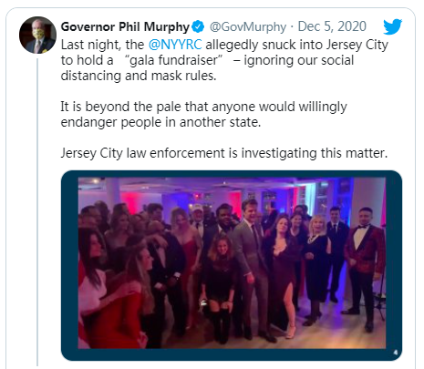 与此同时,美国《国会山报》也曝光了一些政界人士在新泽西州泽西城违规私自举办聚会的做法。报道称,举办这场聚会的是一个名为“纽约年轻共和党人俱乐部”的政治组织,从上传到社交媒体的一系列照片上可以看出,在场的人都没有戴口罩。