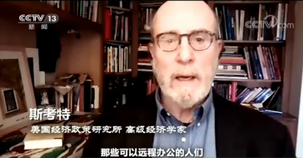 美国经济政策研究所 高级经济学家 斯考特:那些处于社会上层的人们,那些可以远程办公的人们,那些可以通过ZOOM做买卖的人们,他们不会受到什么影响。事实上,这部分人的收入不但没减少,由于支出减少,他们反而攒下了不少钱。