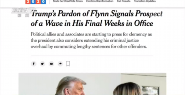 11月25日,特朗普赦免了其幕僚、前美国国家安全顾问弗林(Mike Flynn)。弗林因涉嫌在“通俄门”调查中作伪证,早前一直在接受FBI的调查。《纽约时报》认为,弗林的赦免标志着,特朗普将抓紧时间,在其总统任期的最后几周展开一系列大赦活动。