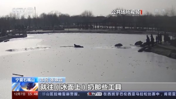 公共场所视频显示,12月3日下午1点50分左右,在石嘴山市惠农区惠安公园,两名男孩在未完全结冰的人工湖湖面玩耍,其中一名男孩向湖中心走去,没想到冰面突然开裂,男孩掉入湖中开始挣扎起来。
