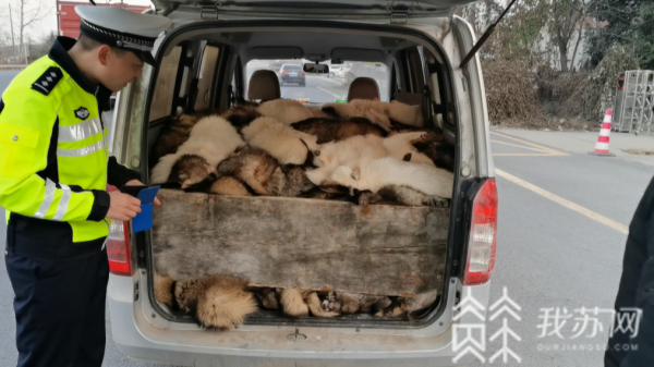 民警在对这辆面包车例行检查时发现,车内似乎装载很多货物,而当民警让其打开车辆后备厢后,发现竟然装满了动物的尸体。民警检查后了解到,这些动物名叫貉子。