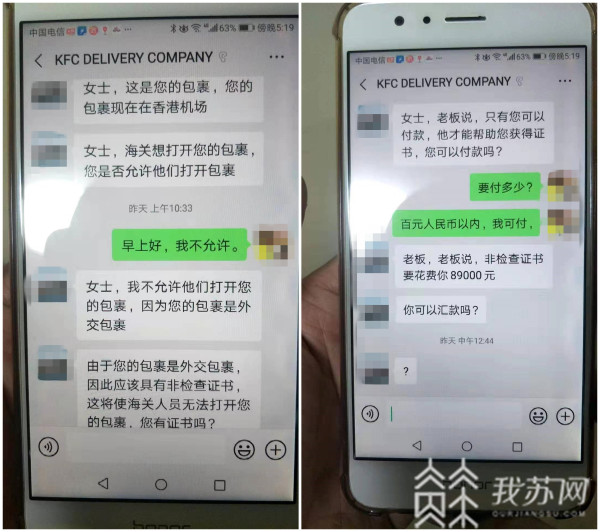 过了两天,这家“KFC”快递公司发来消息,称“法国闺蜜”寄给竺老太的包裹正在接受香港海关检查,如果遭到开箱,包裹里的贵重物品极有可能被扣留。但是只要缴纳89000元人民币,就能获取一张“非检查证书”,从而可以顺利过关。