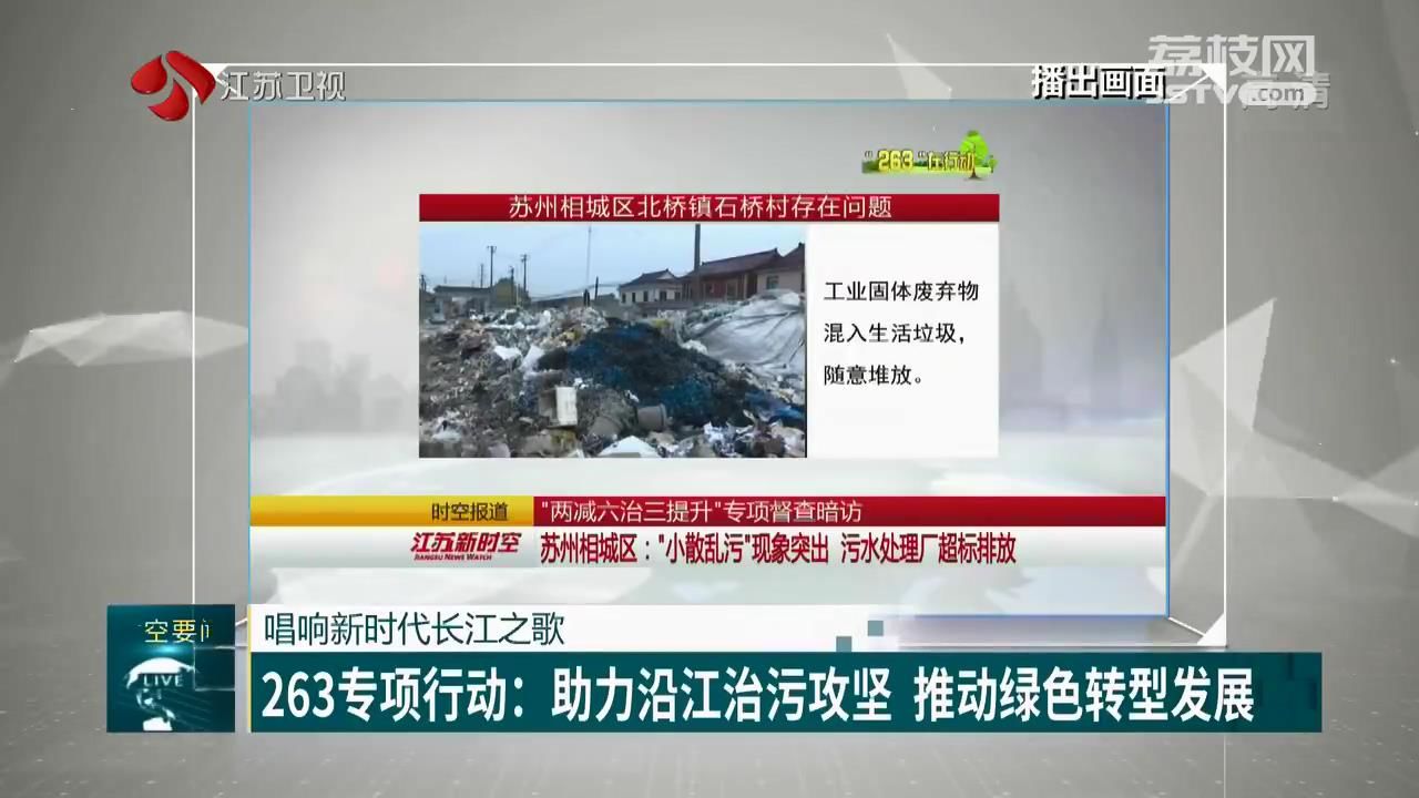 由于长期粗放发展,苏州相城区曾聚集了不少规模小、工艺差、安全隐患大的“散乱污”企业。一些受污染的河流最终汇入长江。2017年5月,263专项行动积极介入,连续在江苏卫视专栏曝光苏州相城区突出环境问题。很快,当地掀起了一场“环保风暴”。在梳理一百多条环境问题线索后,相城区以铁腕治污的魄力,关停“散乱污”企业、淘汰落后产能。同时,加快土地腾退与修复,为先进材料、科技金融等产业留出绿色发展空间。