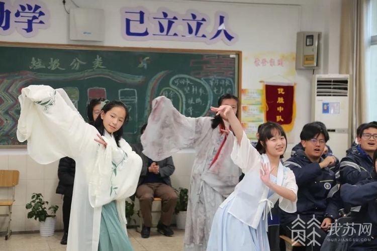 讨论结束后,镜头随即切到南京。四位身着汉服的江南少女正伴着歌声翩然而舞,一曲《茉莉花》展示出柔美深情的江南风韵。原来正在进行的是一场相隔万里的“云”班会。